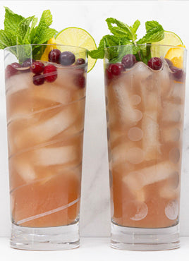 Add fresh orange slices, lime slices and cranberries. Serve in chilled